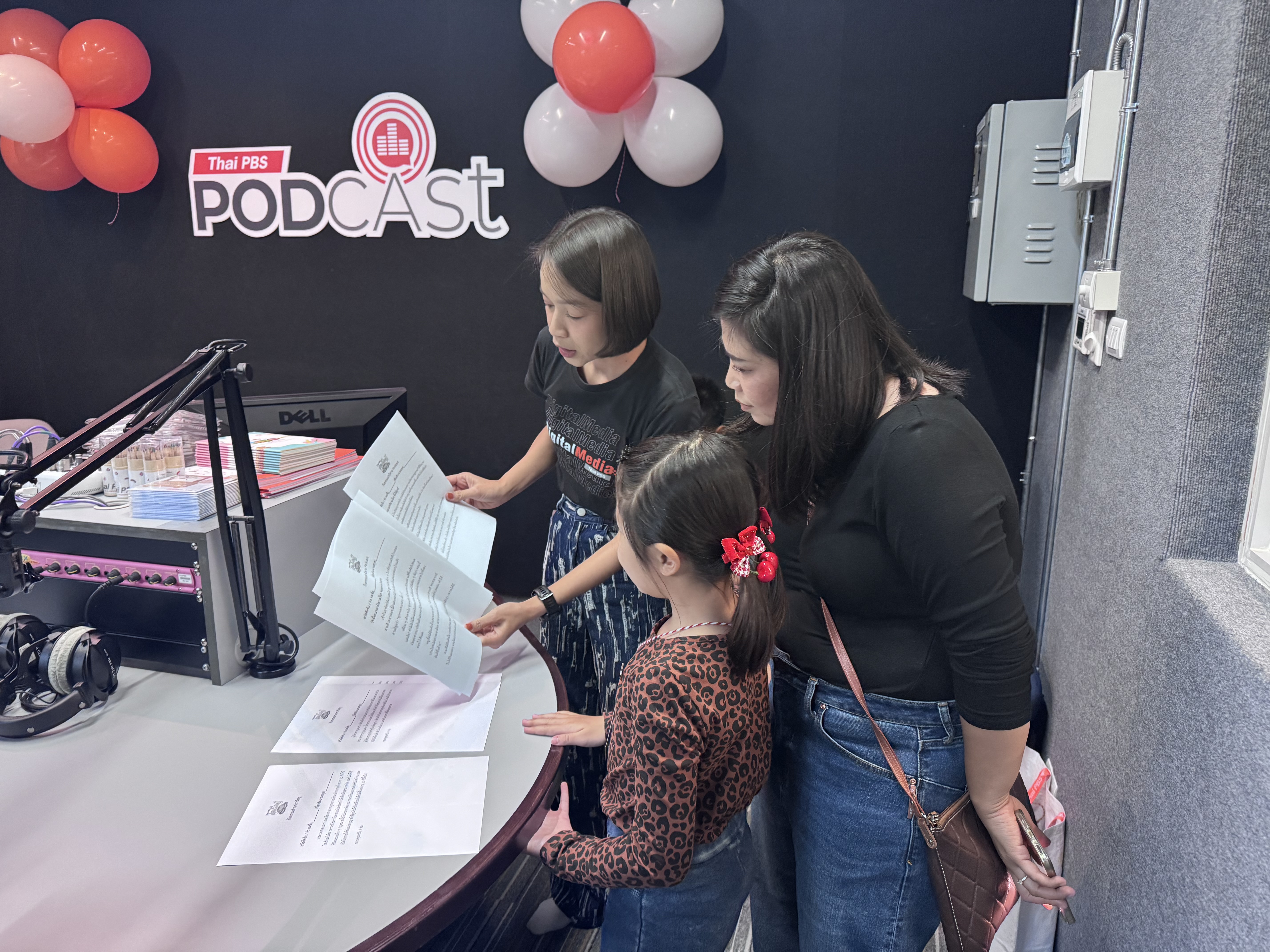 นอกจากนี้ยังมีน้อง ๆ ที่เป็นแฟนคลับรายการนิทานและรายการเด็กของไทยพีบีเอสพอดแคสต์ เช่น “นานาสัตว์สารพัดเสียง” ได้แวะเข้ามาทักทายทีมงาน พร้อมแนะนำเนื้อหารายการที่อยากฟังให้กับผู้ผลิตด้วย