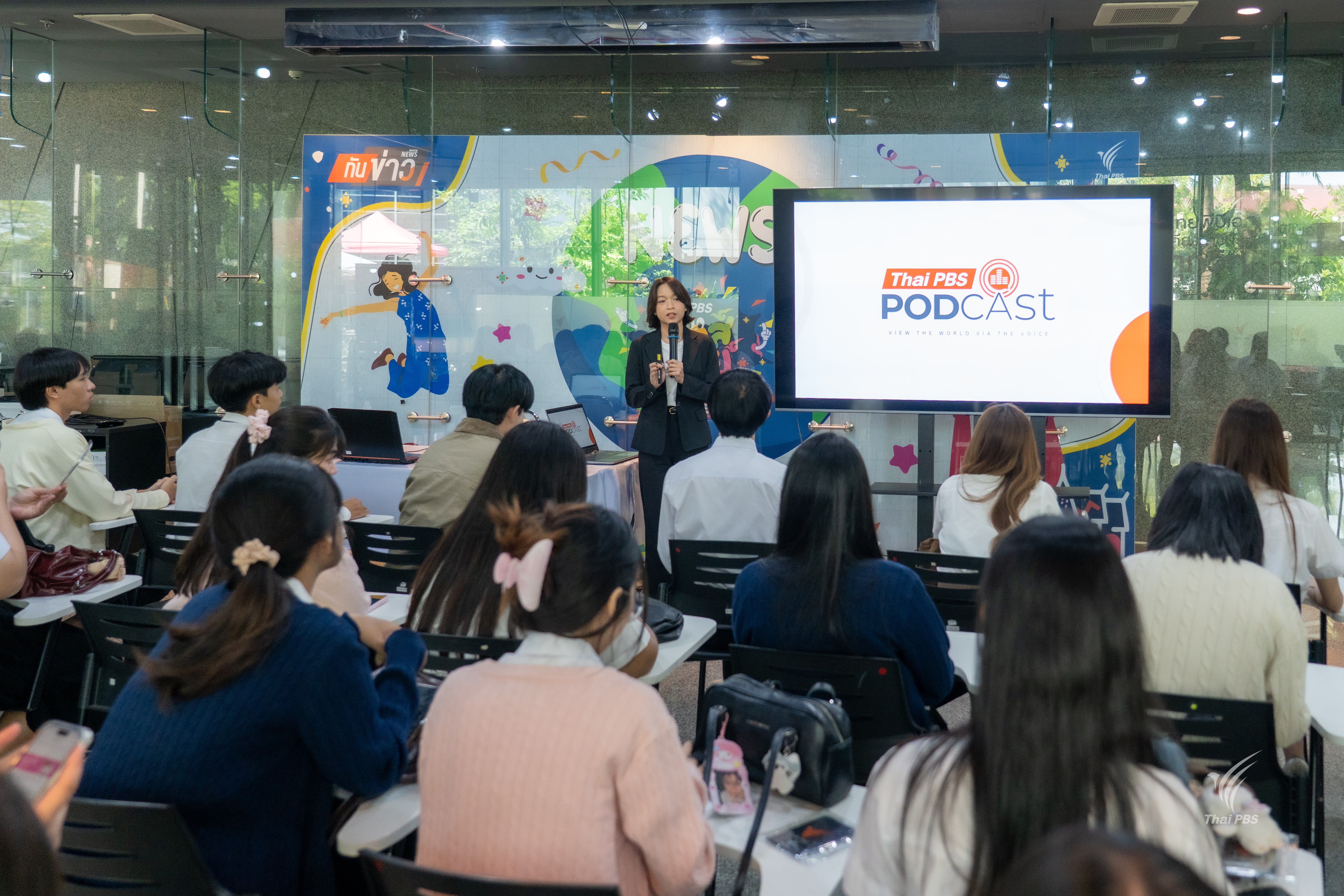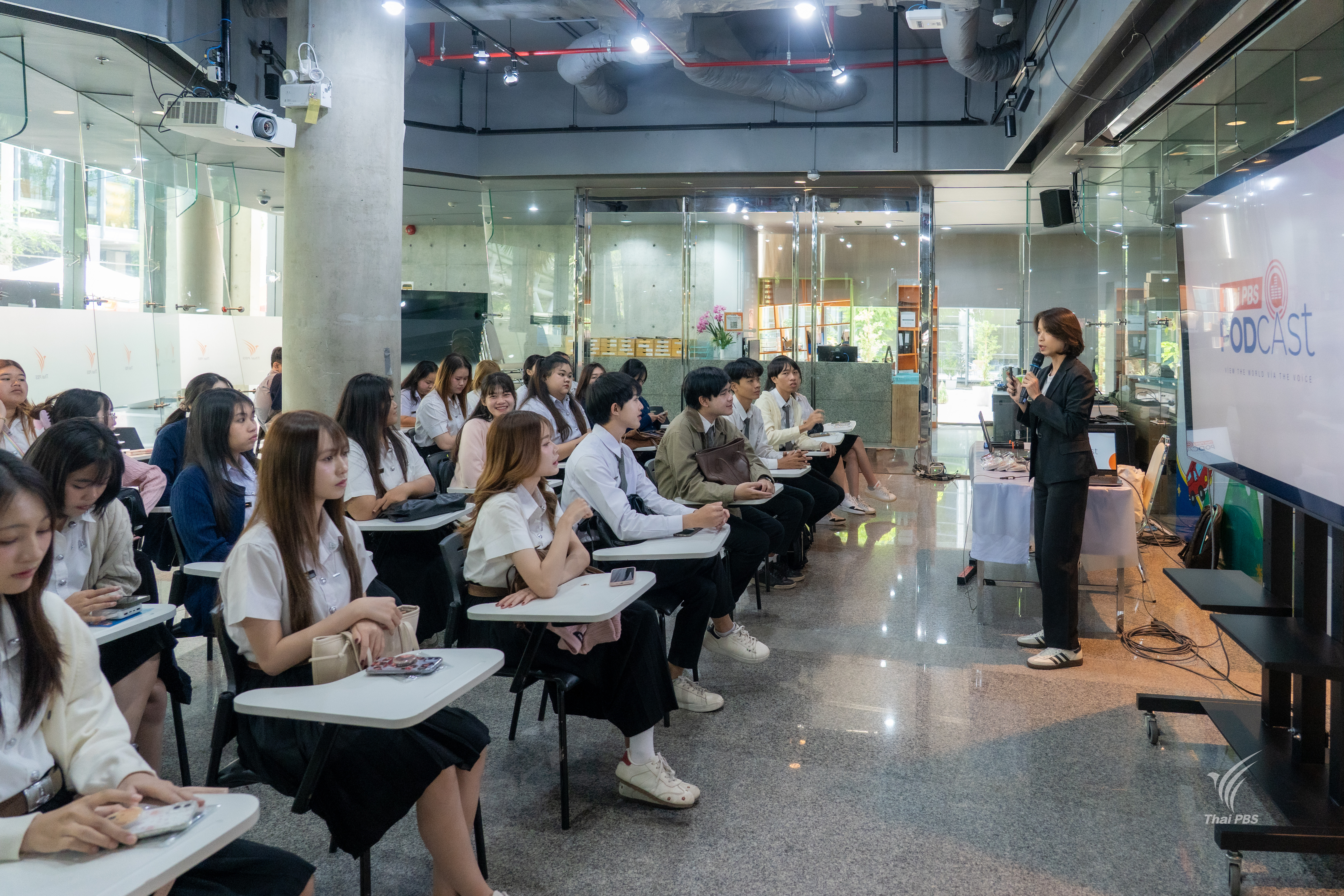 นิสิตสาขาวิชาภาษาไทย มมส. เยี่ยมชมไทยพีบีเอส พร้อมเปิดมุมมองเรื่อง “เสน่ห์ของเสียง” กับ Thai PBS Podcast