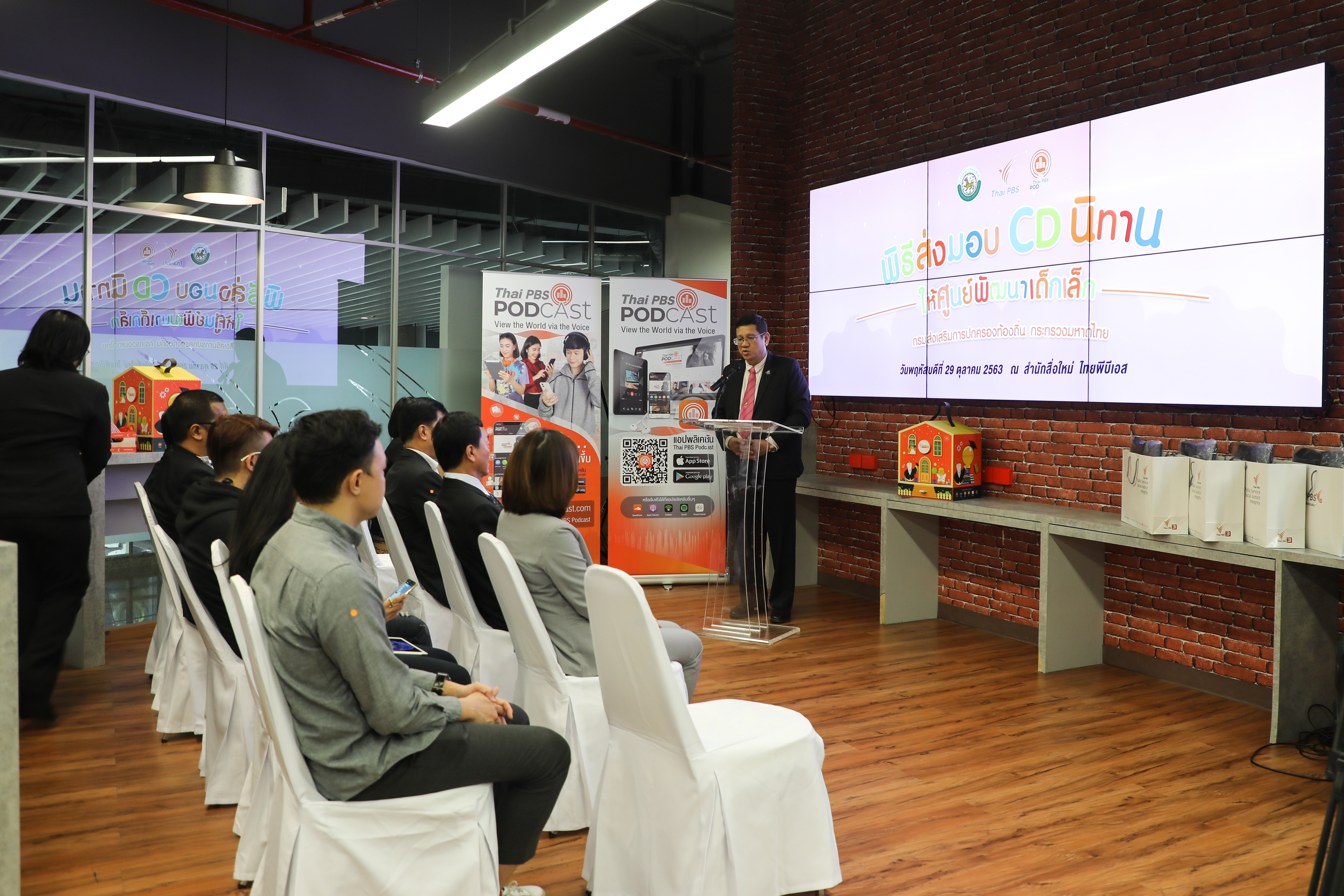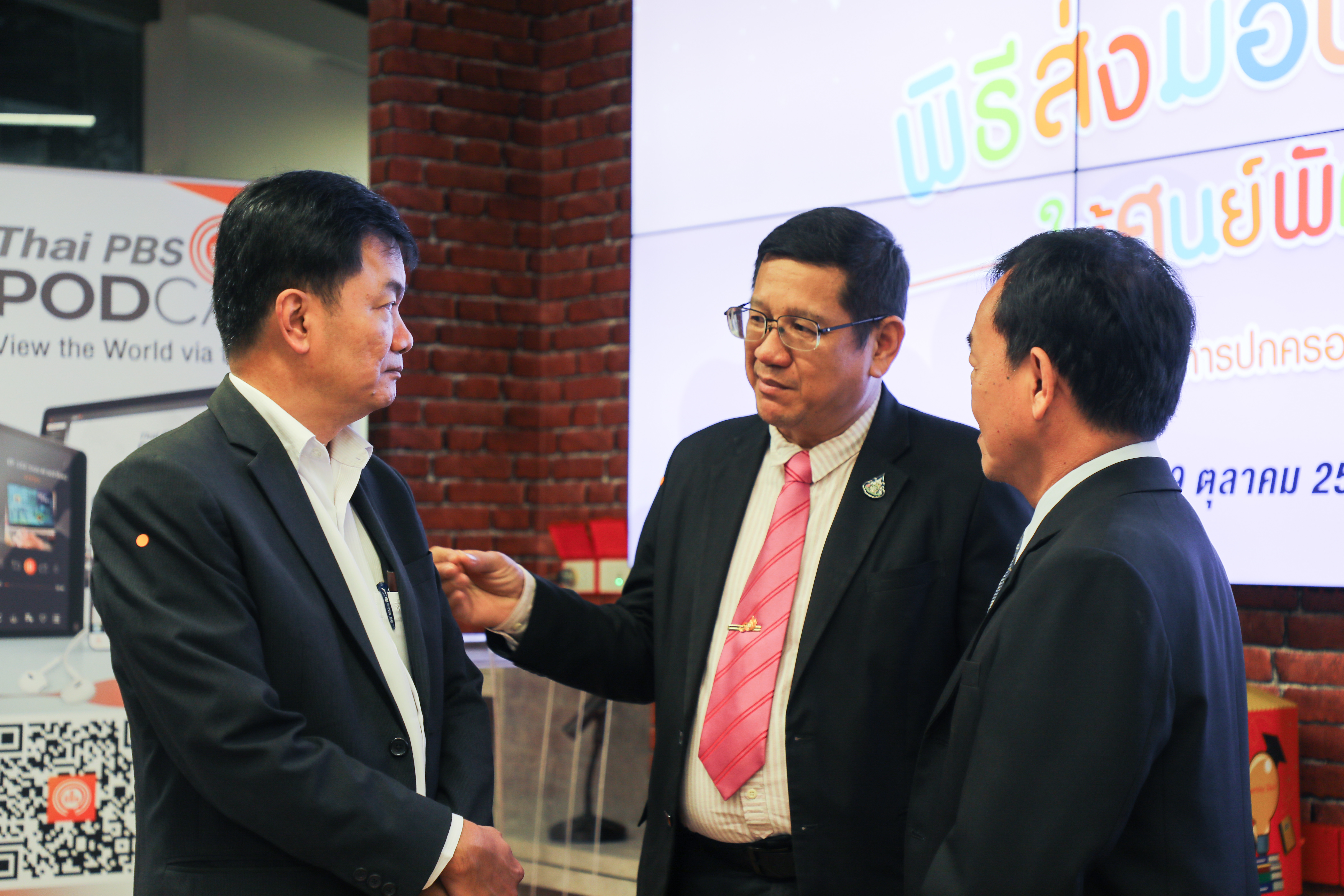 ด้านนายอนุพงษ์ ไชยฤทธิ์ รองผู้อำนวยการ สสท. ด้านปฏิบัติการกล่าวว่า ไทยพีบีเอสให้ความสำคัญในการผลิตสื่อสำหรับเด็กและเยาวชน โดยเฉพาะสื่อเสียงที่ส่งเสริมพัฒนาการเรียนรู้ของเด็กปัจจุบัน ฝ่ายสื่อเสียงไทยพีบีเอสพอดแคสต์ มีรายการสำหรับเด็กหลายรายการ เช่น นิทาน Kids Hour, นิทานบานตะไท, นิทานสามัญประจำบ้าน, พระอาทิตย์ยิ้มแฉ่ง เป็นต้น ในอนาคตก็จะผลิตสื่ออื่น ๆ ที่หลากหลายเพื่อเผยแพร่เป็นบริการสาธารณะต่อไป นอกจากนี้ ไทยพีบีเอสยังได้จัดทำ Thai PBS Learning Shelf ชุดส่งเสริมการเรียนรู้เพื่อเด็ก ประกอบด้วยความรู้ด้านต่าง ๆ เกี่ยวกับภาษาวิทยาศาสตร์และศิลปะ จึงส่งมอบพร้อมกันในครั้งนี้ด้วย